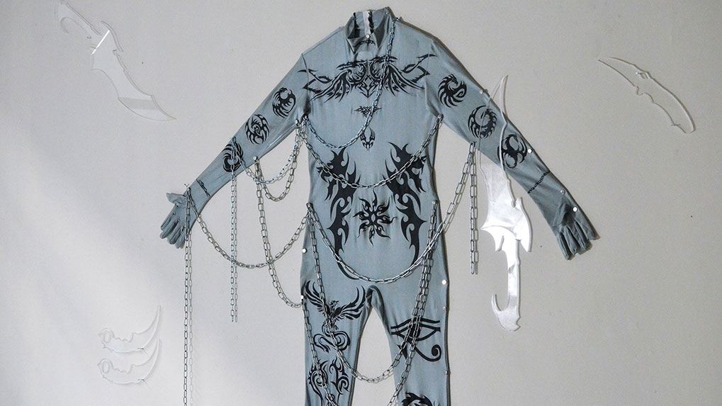 It Made me fall in Love with Them dévoile l'histoire d'un ancien guerrier – un rôle influencé par les jeux vidéo et les personnages en ligne –, ce qui était avant et après son corps, sa présence et ultimement son absence par l’indice de sa présence. Alors que tout est suspendu par un fil fin et que la relation des matériaux s'équilibre par des bouteilles d'eau partiellement remplies, l’installation véhicule des tensions émotionnelles et psychologiques anxiogènes. Le sensible et l'imperceptible dominent l’atmosphère. Nous entrons dans un monde nouveau, où les repères se brouillent, où les références culturelles et les symboles (vêtement, drapeau, armes, bidons, tatouages, etc.) se révèlent.